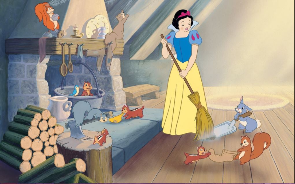 Hoy quiero que nos centremos en la protagonista, Blancanieves, y en algo que ocupa gran parte del tiempo del largometraje, la limpieza. Y es que, seguro que alguna vez habéis pensado en qué tipo de persona llega a una casa de alguien desconocido y, antes de hacer cualquier otra cosa, se pone a limpiarla. ¿Qué puede llevar a alguien a hacer algo así?